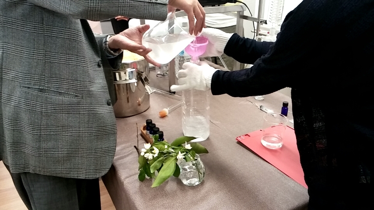 今回の講座では、水蒸気蒸留法の見学と、作り方、